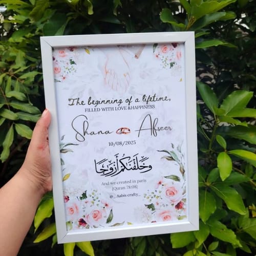 Hi! I’m Abitha — the creative soul behind_ Aabis crafty_. I specialize in Unique personalized gifts In Thrissur  like custom frames, hampers, certificates, Nikah Namas, customized chocolates, and more  all designed to celebrate moments, capture memories, and spread joy.